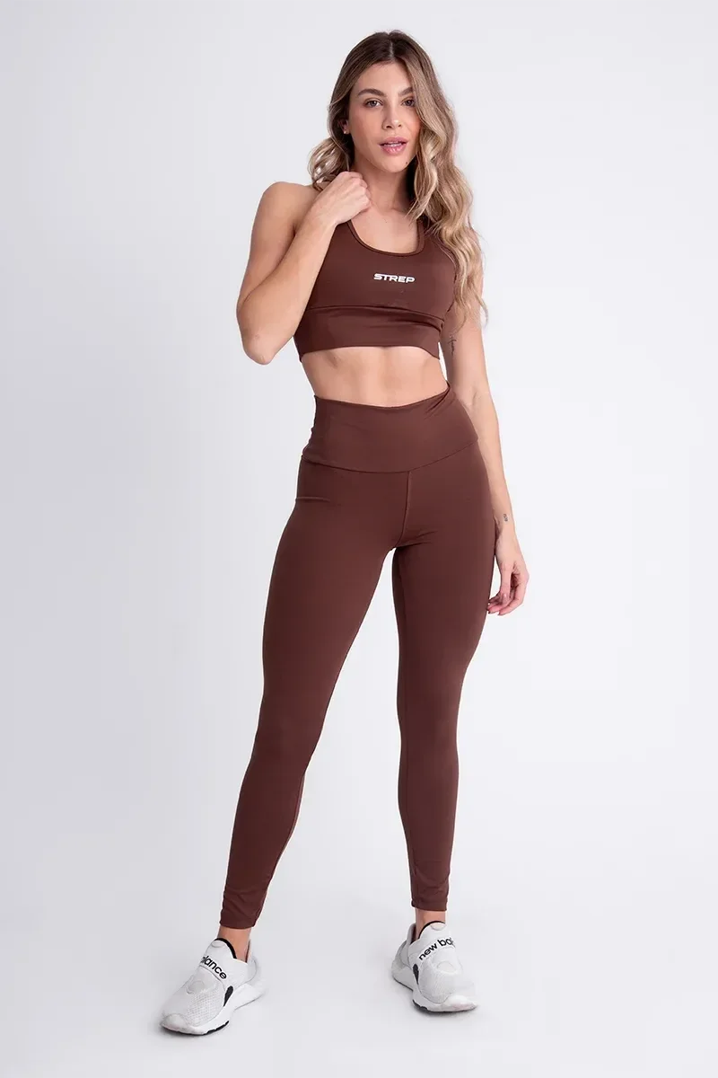 Conjunto Feminino Fitness Calça E Top - Marrom